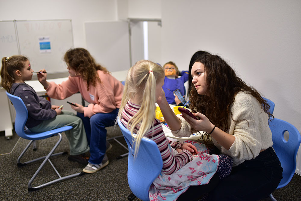 Im zweiten Stock präsentierten die Realschulklassen ein abwechslungsreiches Mitmachprogramm. An Bastelstationen konnte man kreativ werden und eigene Schlüsselanhänger oder Lesezeichen gestalten. Der Französischkurs brachte das Publikum mit einem kleinen Sketch zum Schmunzeln. Darüber hinaus lockten Kinderschminken, eine Fußball-Challenge, Vorspiel der Streicherklasse, Löten im Naturwissenschaftsraum und weitere Aktionen zahlreiche Besucher an.